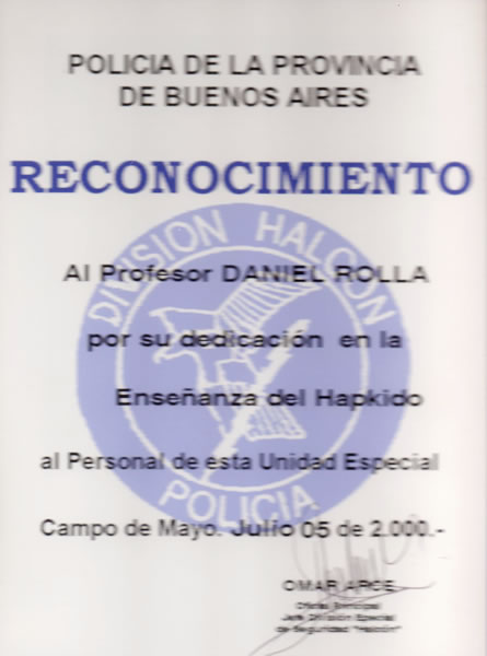 Reconocimiento de la Policía de la Pcia. de Bs. As. - Junio de 2000
